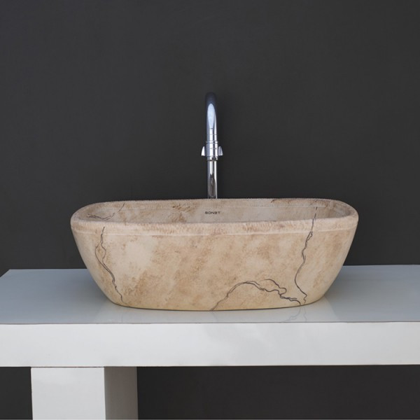 Умывальник SONET TITANIUM 535x400x160 мм, овальный, накладной чаша без отверстия под смеситель, без перелива, выполнен в бежевом цвете. Керамика.