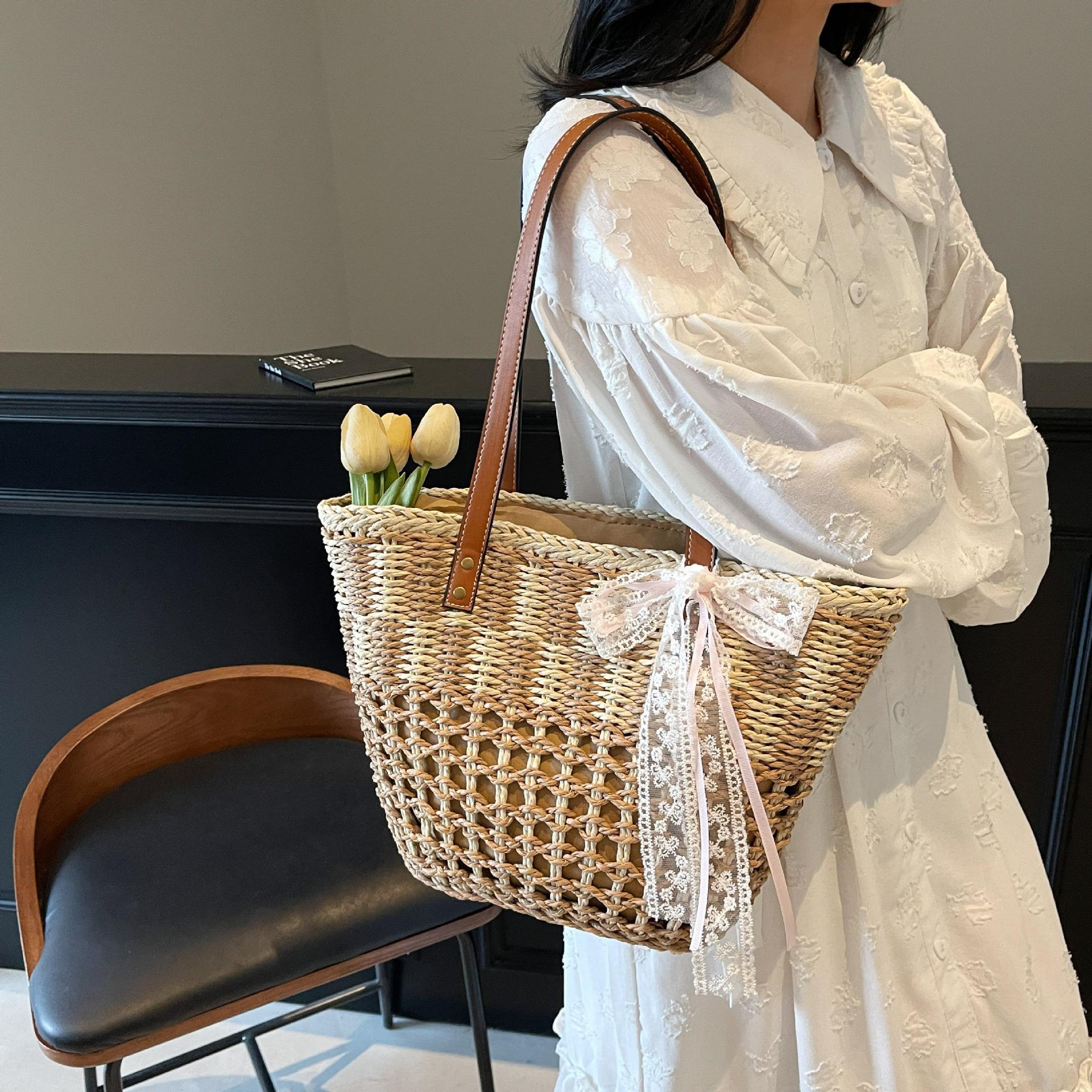 Универсальная большая полая плетеная сумка из соломы Женская пляжная плетеная сумка Повседневная сумка-корзина для овощей Портативная плетеная сумка из соломы