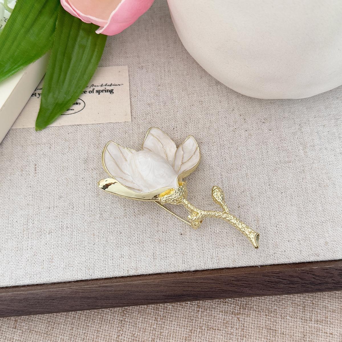 Универсальная брошь с темпераментом Эмалированная брошь-магнолия Высококлассная ретро брошь Цветок на грудь Женская
