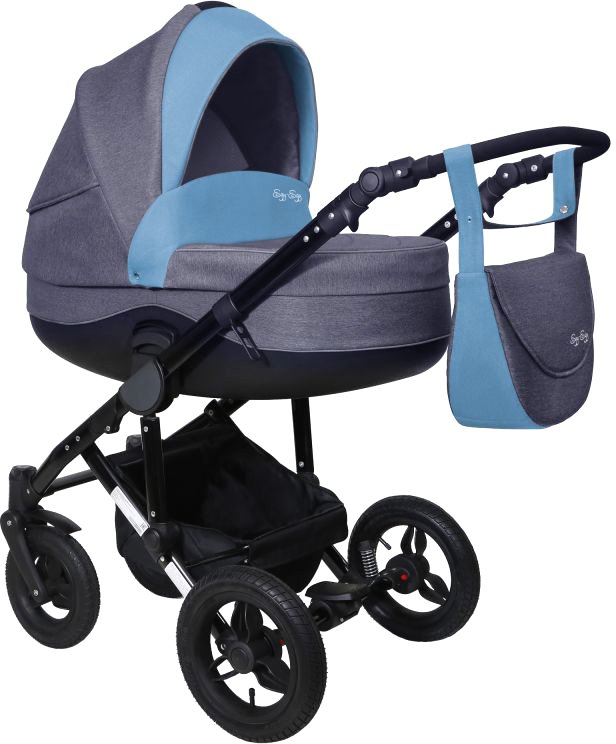 2 в 1 (люлька + прогулка), стиль: современный, ткань, шины надувные, вес 13.9 кг, цвет голубой/серый