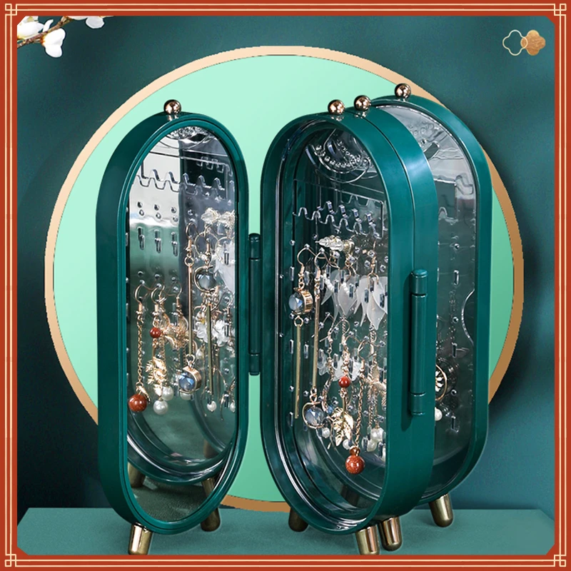 Jewelry Storage Box Household Earrings Necklace Display Stand High Capacity Luxury Retro Screen Jewelry Organizer Case