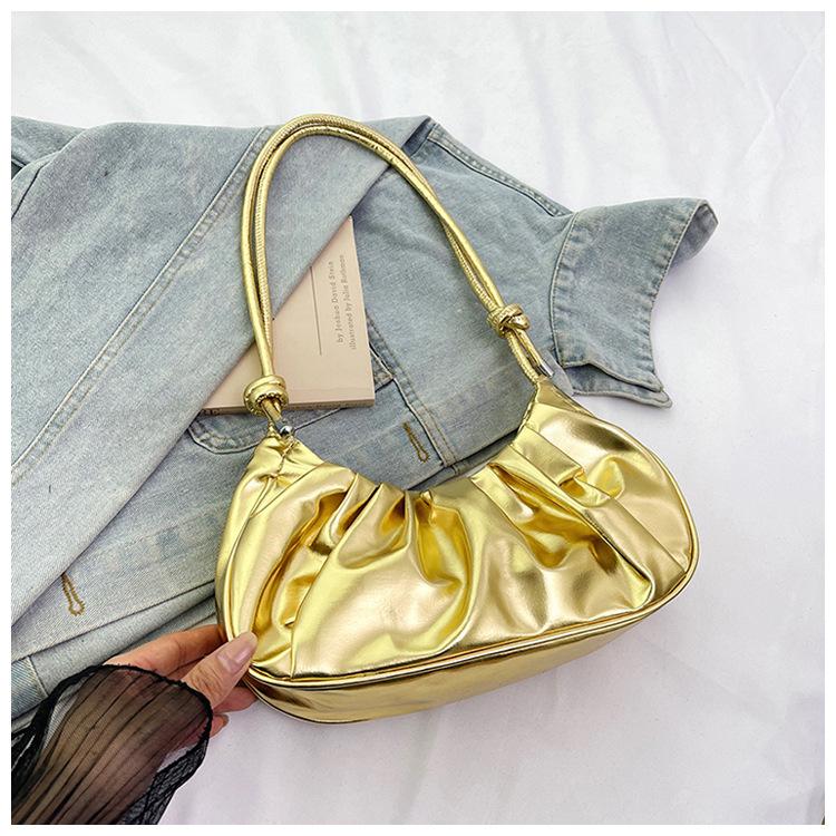 Универсальная сумка-пельмень на одно плечо 2025 новая модная сумка под мышкой французская высококлассная облачная плиссированная глянцевая сумка-мессенджер золотой