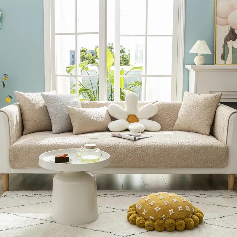 Универсальная хлопковая стеганая вышитая годовая кольцевая подушка для дивана на четыре сезона, современная простая однотонная тканевая диванная подушка, полотенце 70x70cm 1pcs