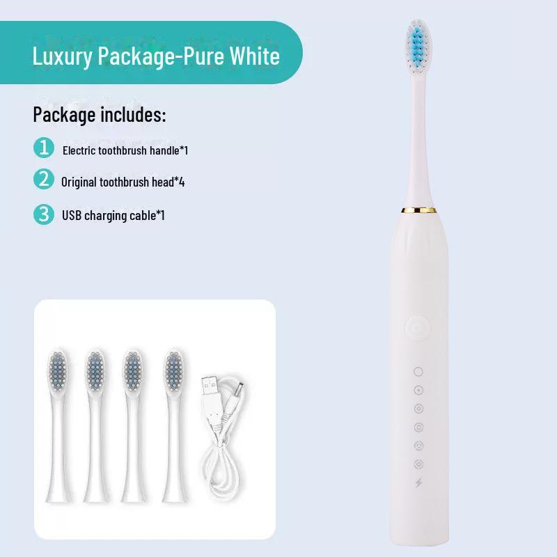 Универсальная электрическая зубная щетка с мягкой щетиной для взрослых и детей — автоматическая, перезаряжаемая, идеально подходит для пар Upgraded 6-speed 4-brush head, small box чистый белый