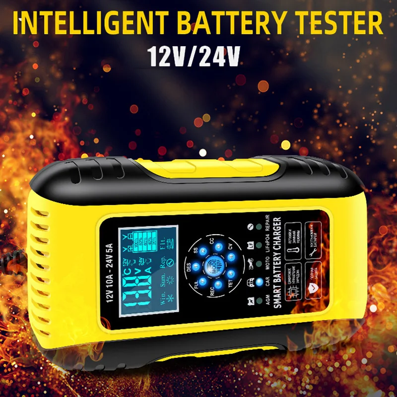 Универсальное автомобильное зарядное устройство, 12-24 В, 10 А, зарядка аккумулятора, 7-сегментный цифровой дисплей, зажимы для автомобильного аккумулятора, пусковое устройство