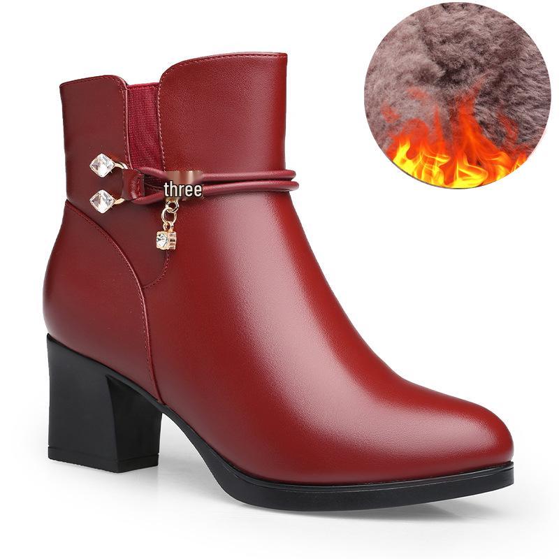 Универсальные женские кожаные ботинки на танкетке больших размеров - Мягкая подошва, хлопок, плюс бархатная теплая подкладка, осень/зима 41