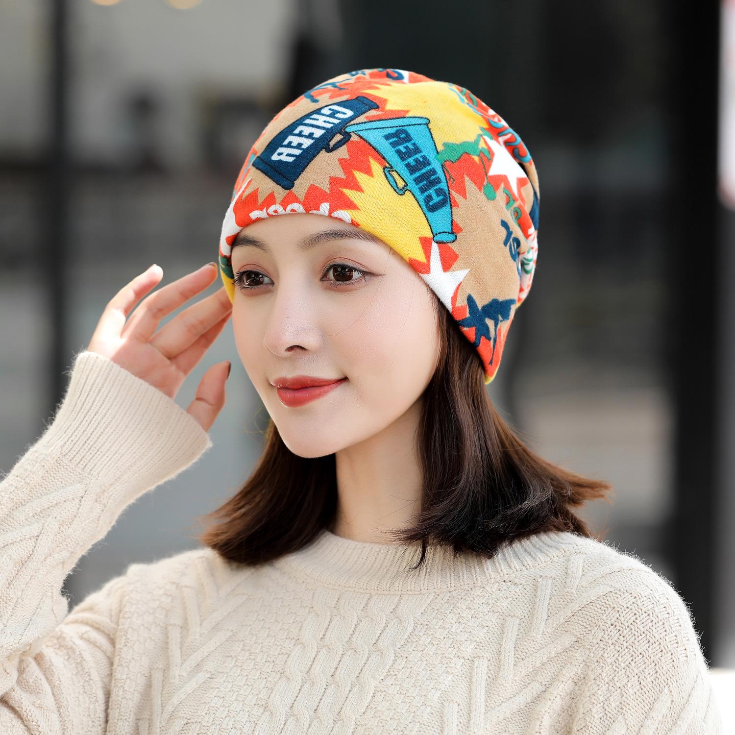 Универсальные корейские женские шапки на осень/зиму: Головной платок, баотоу, пуловер, шейный платок, принт, ворс и защитные уши