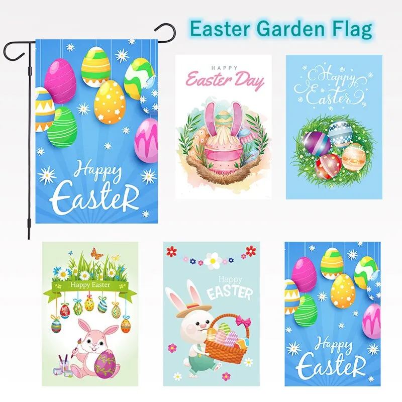Double Side Printed Garden Flag Rabbit Easter Eggs Pattern Banner Festival Decor(without Flagpole)