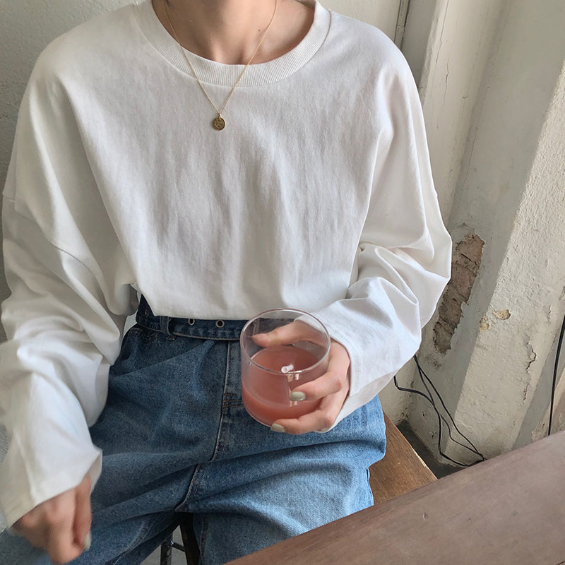 6 colors 2021 spring autumn korean ins style solid color loose tops basic long sleeve t shirts womens tee shirt femme (X209, White