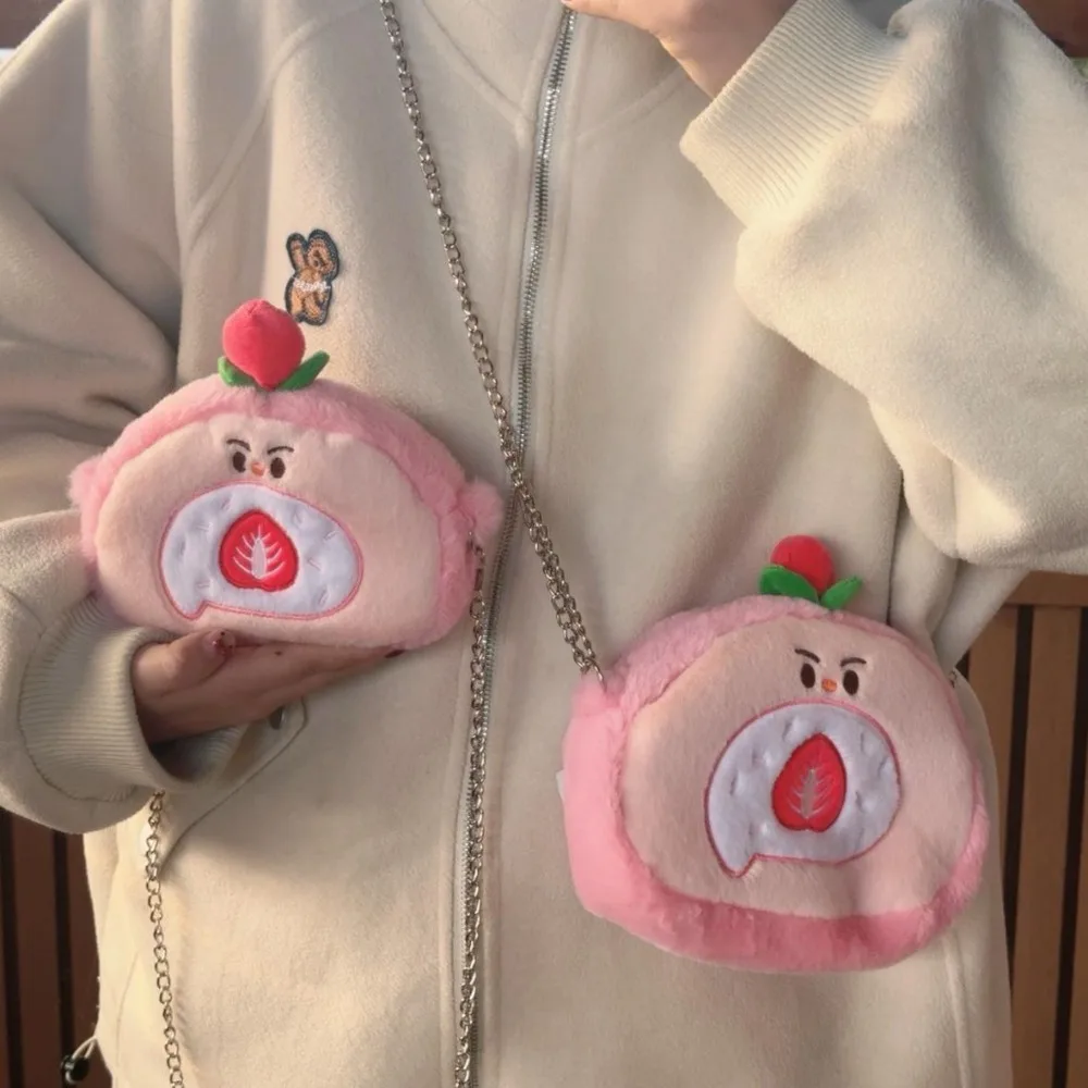 Универсальный милый швейцарский рулонный кошелек для монет в форме торта, большая вместительная плюшевая сумка через плечо, мягкая цепочка, мультяшная сумка на плечо для детей