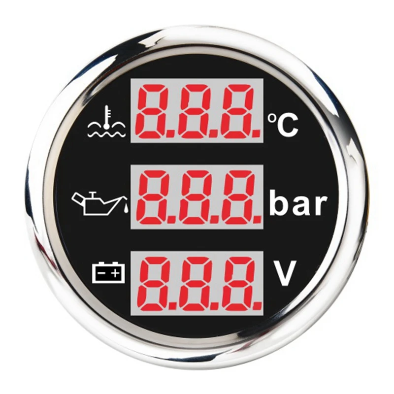 Универсальный многофункциональный цифровой измерительный прибор 52 мм 3 в 1 водонепроницаемый измеритель температуры воды и давления масла вольтметр с сигнализацией