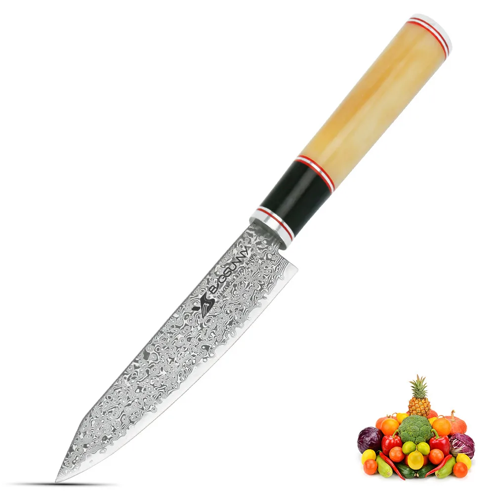 Универсальный нож BIGSUNNY из дамасской стали, лезвие 5,2 дюйма, ручная работа с ручкой из быстрорежущей стали