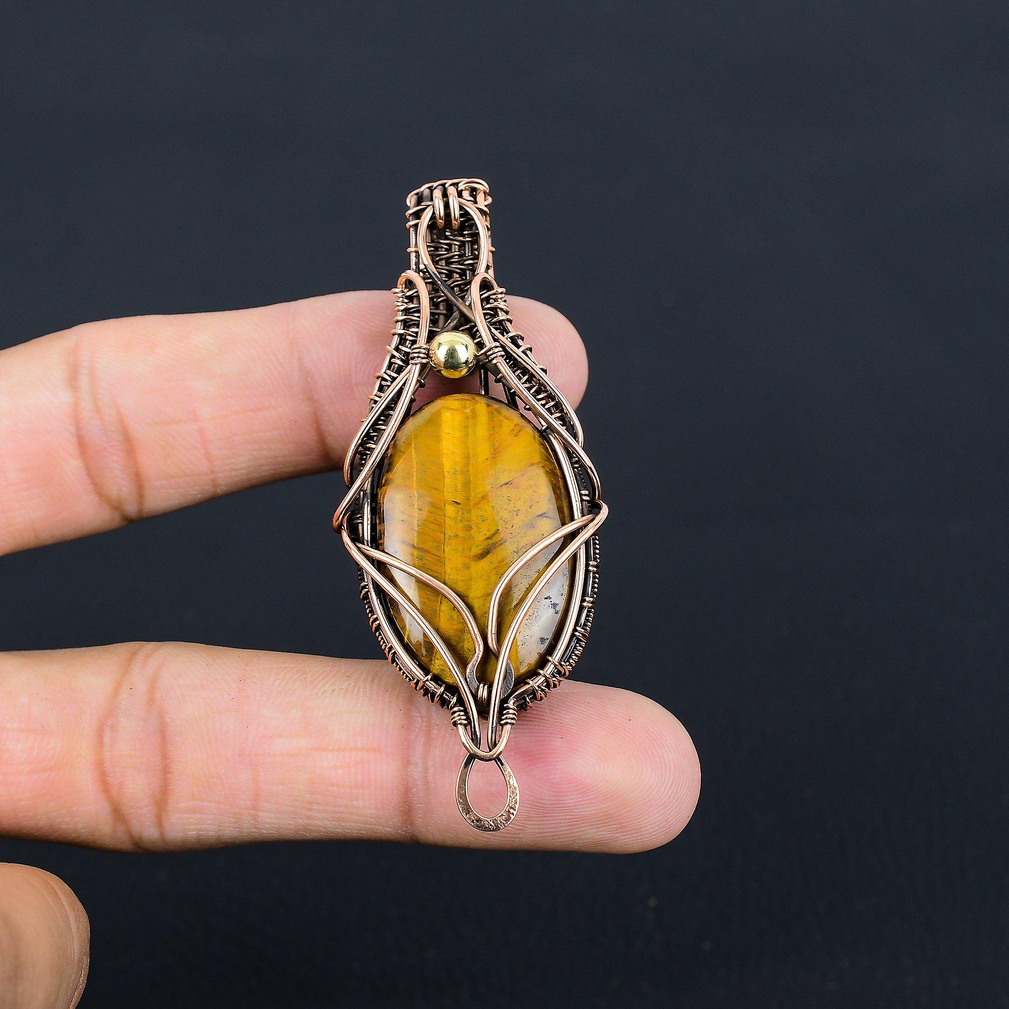 Уникальный кулон ручной работы из чистой медной проволоки с драгоценным камнем «Тигровый глаз», ювелирные изделия 2.75 Inches жёлтый