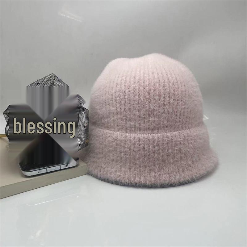 Унисекс Высококачественная Вязаная Шерстяная Шапка с Плюшем из Искусственной Норки - Теплая Однотонная Осенне-Зимняя Шапка-Бини L (58-60cm) розовый