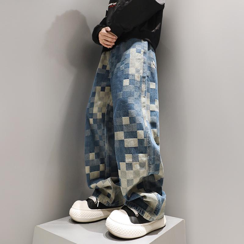 Унисекс Джинсы Клеш в Стиле Ретро Пэчворк для Ранней Осени - Облегающий Крой, Прямой Крой XXXL синий