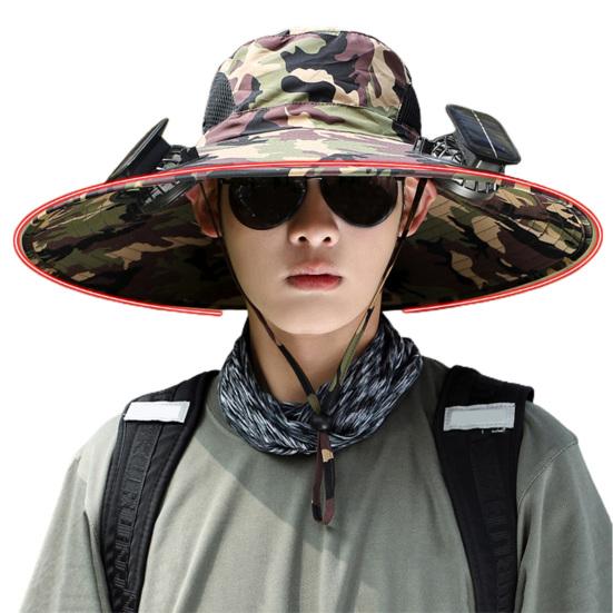 Унисекс Крышка вентилятора от солнечной батареи с большими полями Ветрозащитный ремешок Зарядка через USB Анти-УФ-защита от солнечного света Камуфляжный принт Полая сетка На открытом воздухе Рыбалка Кемпинг A