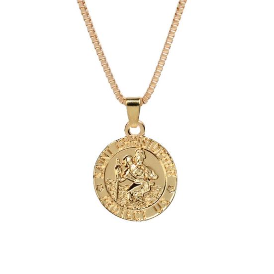 Унисекс Святой Кристофер Защити Нас Письмо Печати Святой Кулон Ожерелье Амулет золотистый
