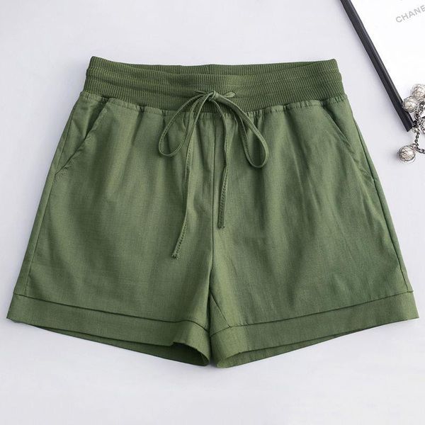 summer cotton linen women short large size black green blue orange elastic waist casual sports, White;black