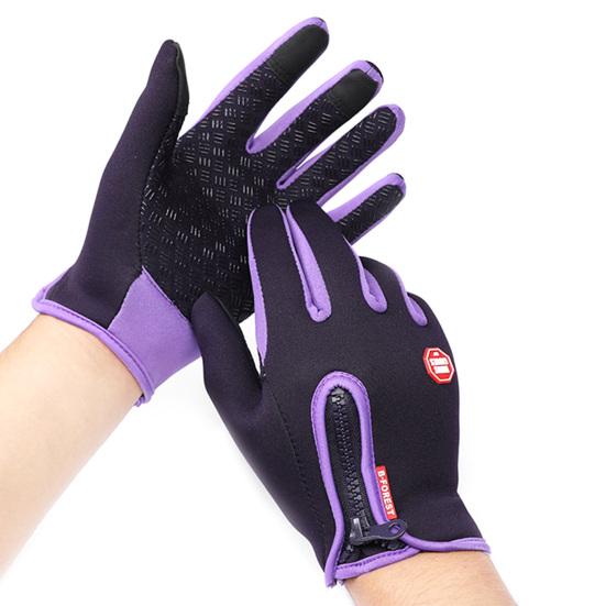 Унисекс зимние уличные лыжи велосипедные водонепроницаемые теплые перчатки на молнии для сенсорного экрана XL фиолетовый
