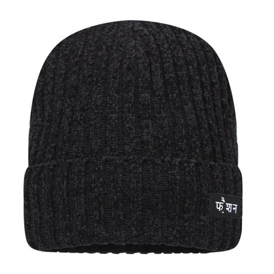 Унисекс зимняя вязаная шапка из утолщенного флиса теплая противоскользящая ветрозащитная однотонная высокоэластичная защита ушей для езды на велосипеде и катания на лыжах шапочка чёрный