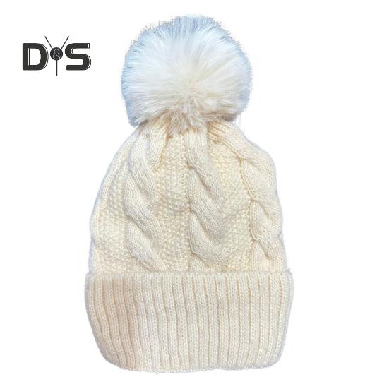 Унисекс зимняя вязаная шапка с толстыми полями, однотонная, эластичная, с помпоном, защита ушей, ворсистая шапка, ветрозащитная, для холодной погоды, теплая, для головного убора бежевый