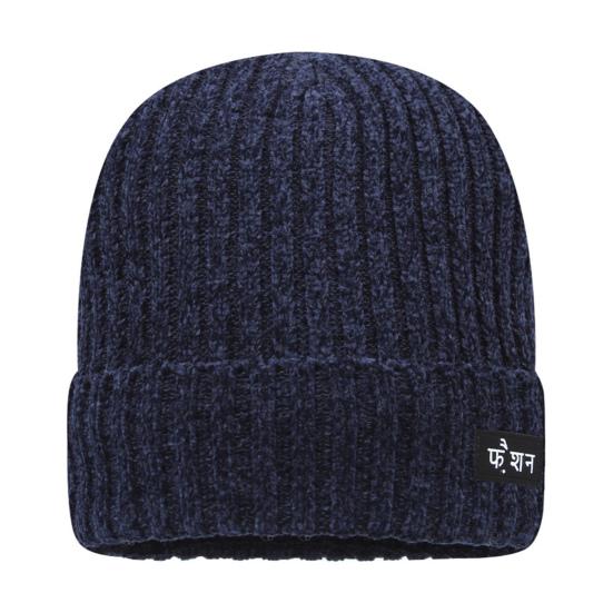 Унисекс зимняя вязаная шапка утолщенный флис теплая противоскользящая ветрозащитная однотонная высокая эластичность темно-синий