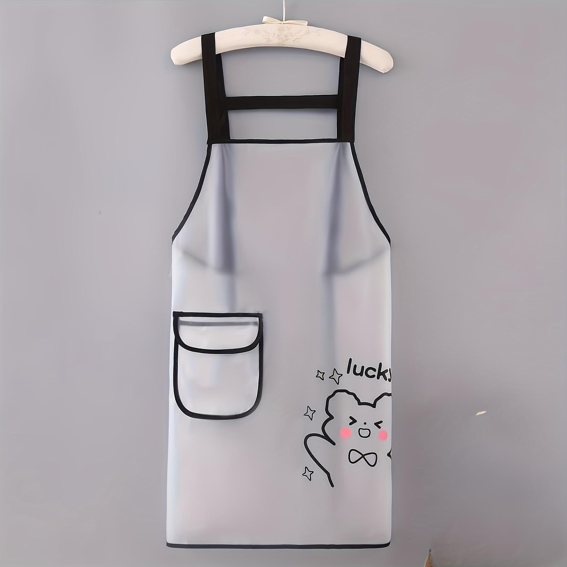Унисекс фартук, прозрачный фартук из ТПУ с принтом медведя и одним карманом, подходит для кухни/столовой/сада, черно-белый белый