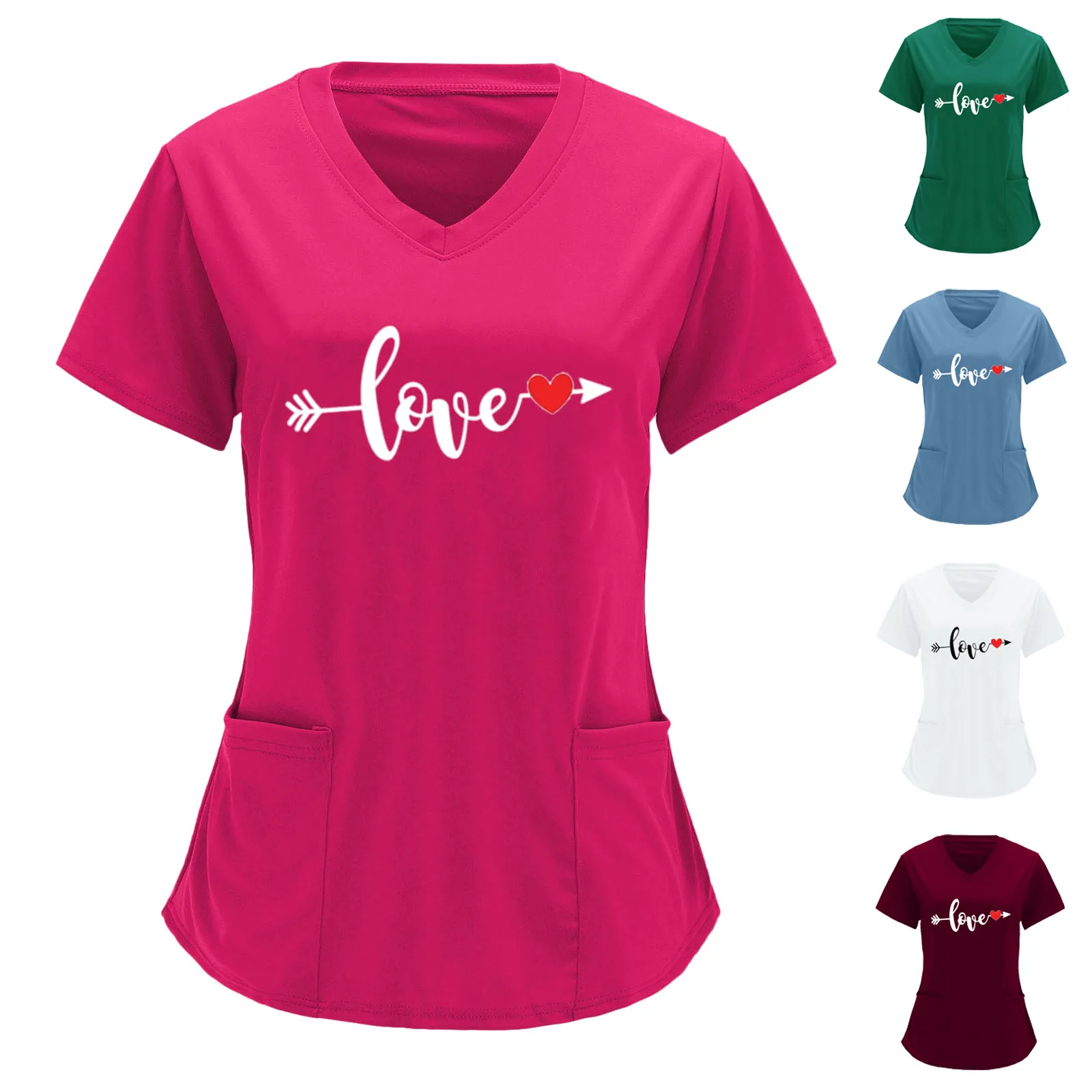 Униформа медсестры Женская однотонная с коротким рукавом и карманами