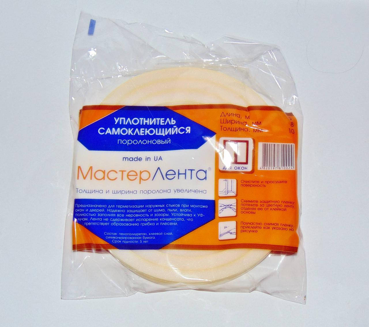 Уплотнитель поролоновый для окон 9м самокляющийся