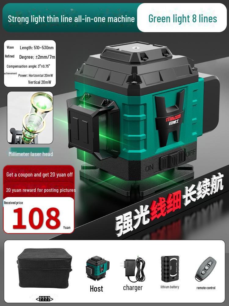 Уровень 12 Зеленая лазерная линия: Высокоточный 16-линейный инфракрасный датчик для использования в помещении и на улице