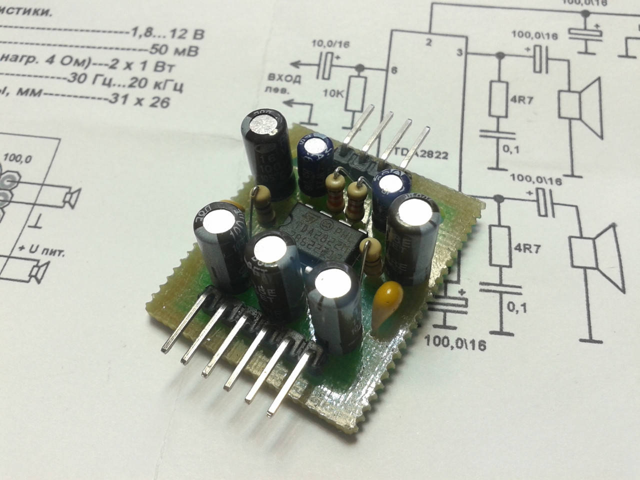 Усилитель стерео на TDA2822M, 2х1Вт.