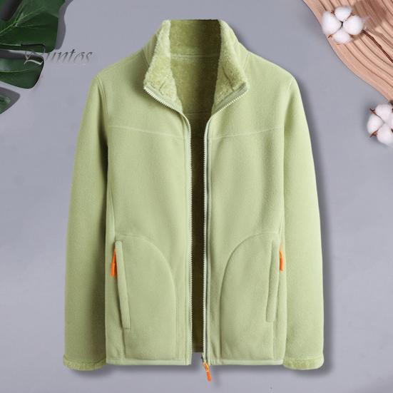 Зимнее женское пальто на молнии с воротником-стойкой, длинными рукавами, свободными утолщенными плюшевыми карманами на молнии, двухсторонняя теплая куртка для работы на открытом воздухе M розовый