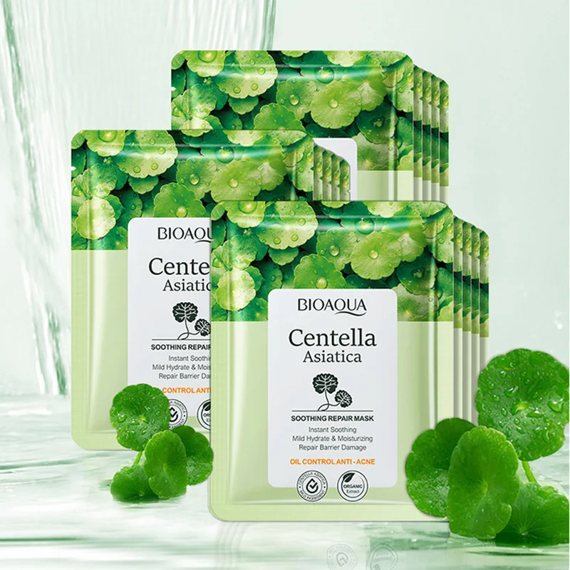 Успокаивающая маска для лица BIOAQUA Centella азиатская, Увлажняющая восстанавливающая маска для лица против акне и сокращения пор