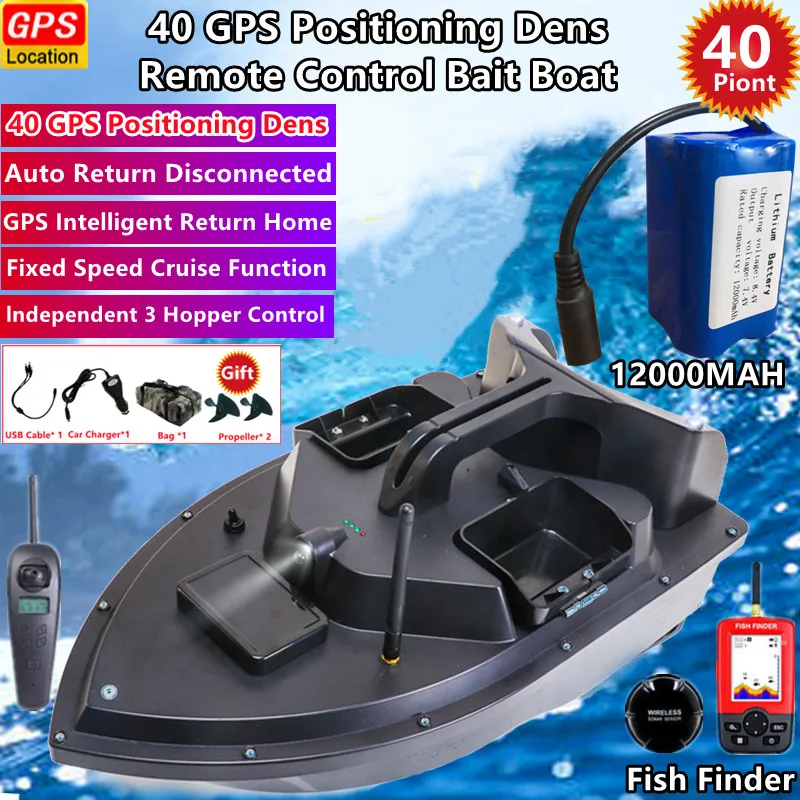 Устройство для обнаружения приманки, калибровка, 40 дюймов, GPS, лодка для наживки на радиоуправлении, 6 часов, нагрузка 2 кг, автоматический возврат, эхолот, рыболокатор, лодка для рыбалки на радиоуправлении