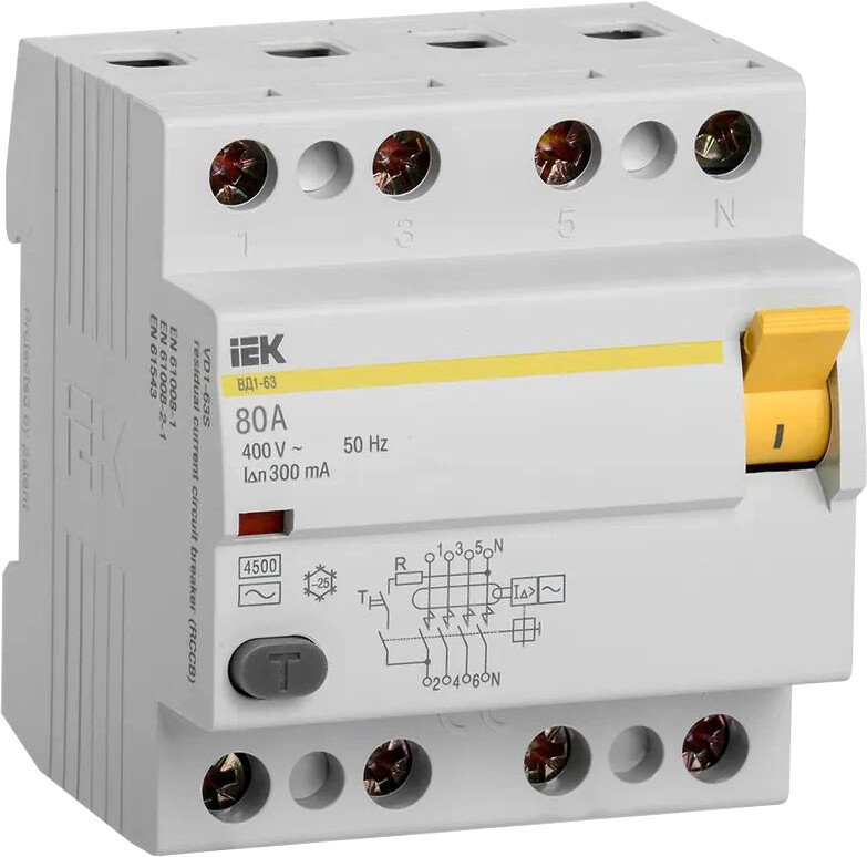 Устройство защитного отключения IEK ВД1-63 80А 300мА тип AC 4п MDV10-4-080-300