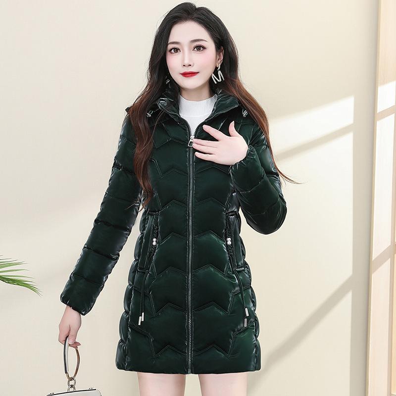 Утепленная хлопком женская зимняя одежда средней и длинной длины, глянцевая несмываемая пуховая хлопковая одежда, в иностранном стиле, теплая и утолщенная XL (95-55 kg) темно-зеленого