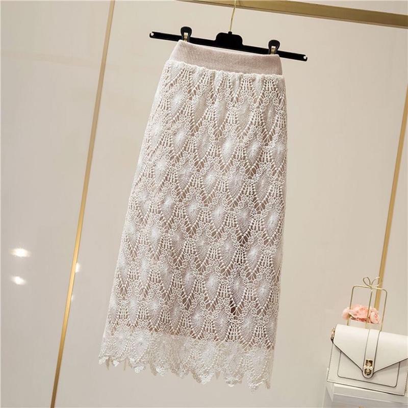 Утолщенная вязаная крючком кружевная юбка средней длины для осенне-зимней одежды с вязаной по обеим сторонам юбкой на ягодицах Юбка средней длины XL белый