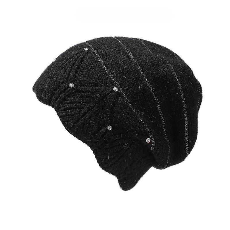 Утолщенная кружевная шапка с точечной вышивкой, женская флисовая вязаная шапка для наслоения чёрный