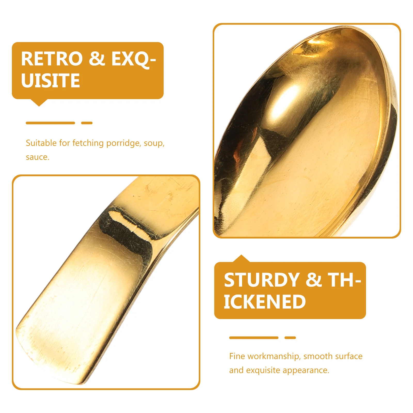 Утолщенная латунная половник для супа с длинной ручкой, сверхмощная золотая металлическая ложка для кухни, ресторана, отеля, гладкая, нескользящая