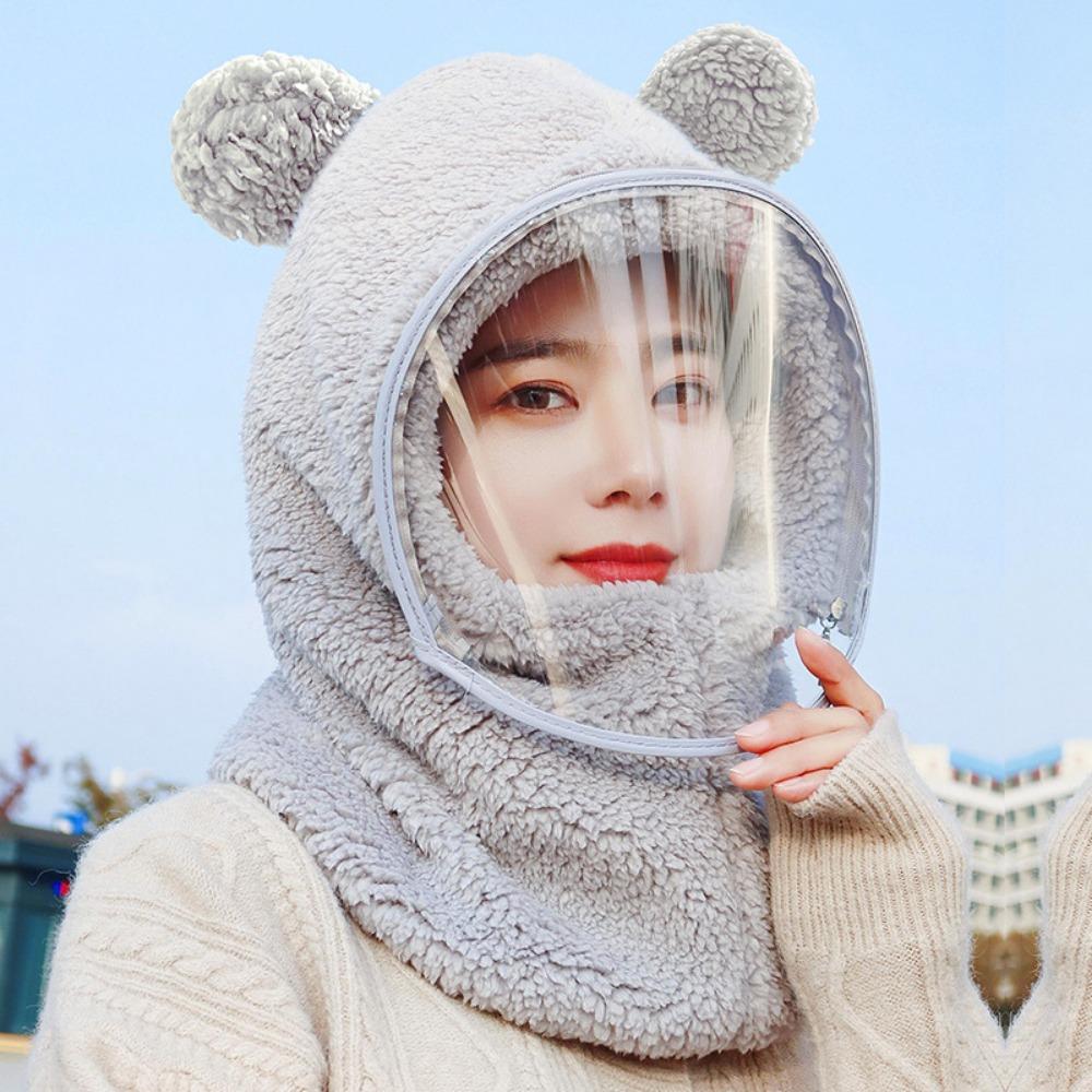 Утолщенная маска для лица для верховой езды, теплая плюшевая шапка-пуловер, практичная шапка-маска для лица, для улицы серый
