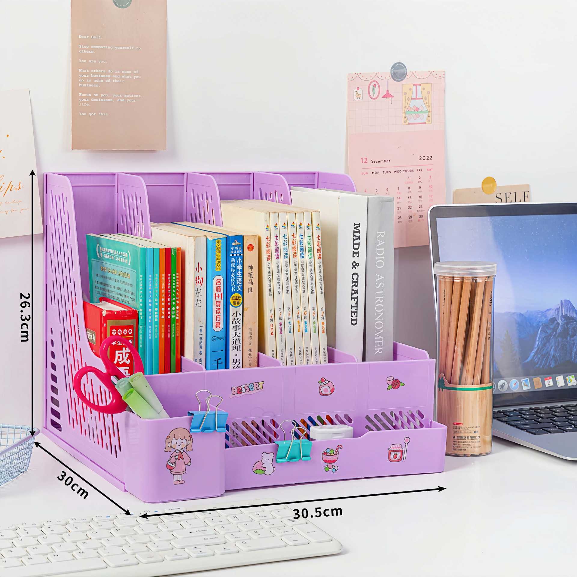 Утолщенная рамка для файлов Четырехколонная направляющая для файлов с подставкой для ручек Органайзер для папок Архив информации Вертикальный настольный держатель для файлов