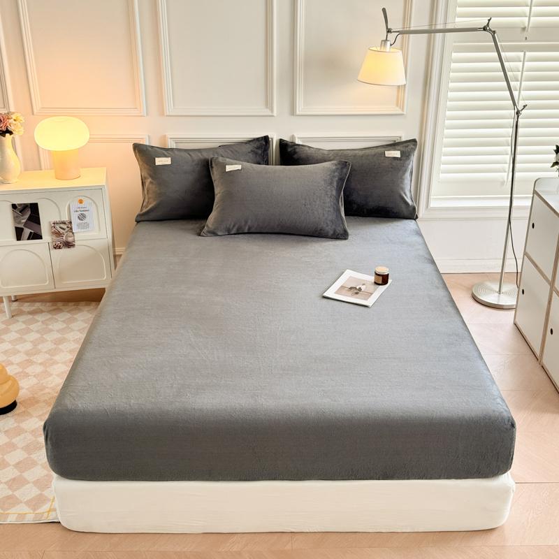 Утолщенная теплая молочная бархатная простыня, зимнее односпальное покрывало, чехол для матраса, нескользящая кровать - Односпальная простыня 2pcs pillowcase серый