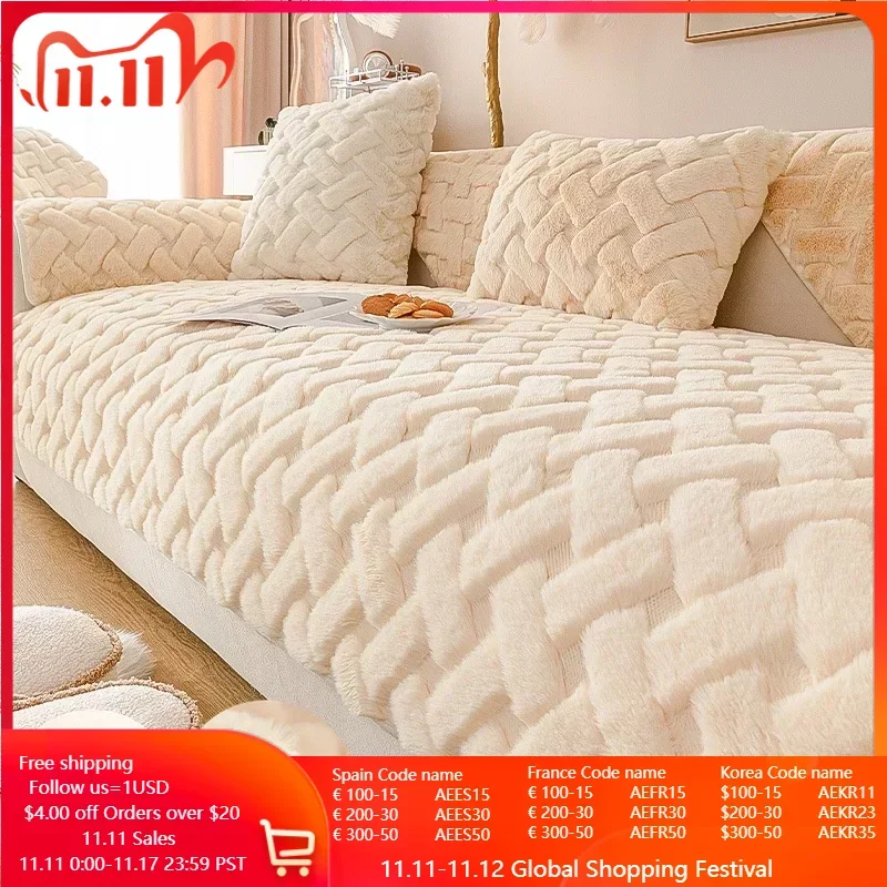 Утолщенный плюшевый коврик для дивана, жаккардовое универсальное покрывало для дивана, нескользящее комбинированное покрывало для дивана на осень и зиму, чехол для дивана, коврик для гостиной