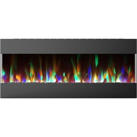 Hanover Fireside 50 In. Recessed/Wall-Mounted Electric Fireplace with Crystals and LED Color-Changing Flame Display Black