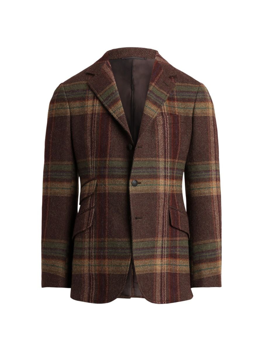 Однобортное спортивное пальто из шерсти в клетку Kent Ralph Lauren Purple Label, коричневый