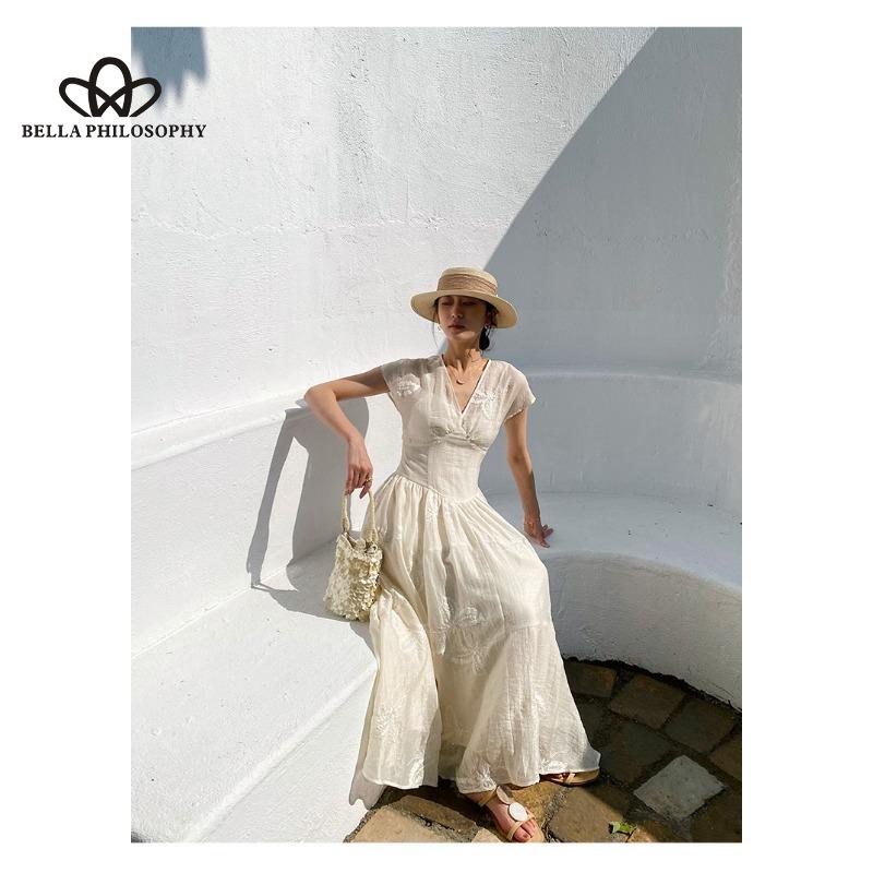 Утягивающее французское платье, женское праздничное длинное платье с вышивкой, праздничное платье в сказочном стиле, повседневное пляжное платье M бежевый