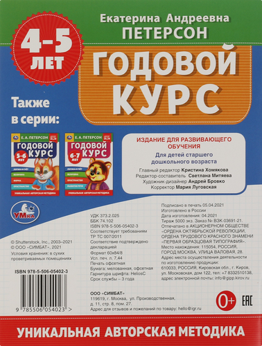 Учебное пособие УМКА Е.А.Петерсон Годовой курс, 4–5 лет, 64 страницы, 20х26см, А4, Арт. 311816