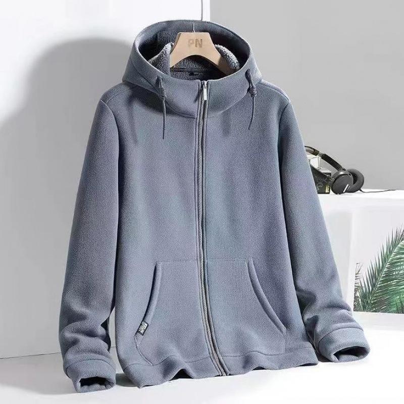 Уютная мужская толстовка с капюшоном, зимняя теплая флисовая толстовка с капюшоном на молнии, повседневные ветрозащитные пальто XXXL серый
