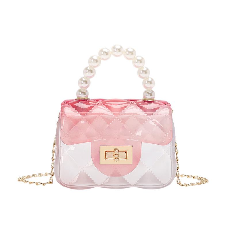 Уютная прозрачная желеобразная женская сумка с жемчугом, сумка через плечо ярких цветов 12x9x4cm красный