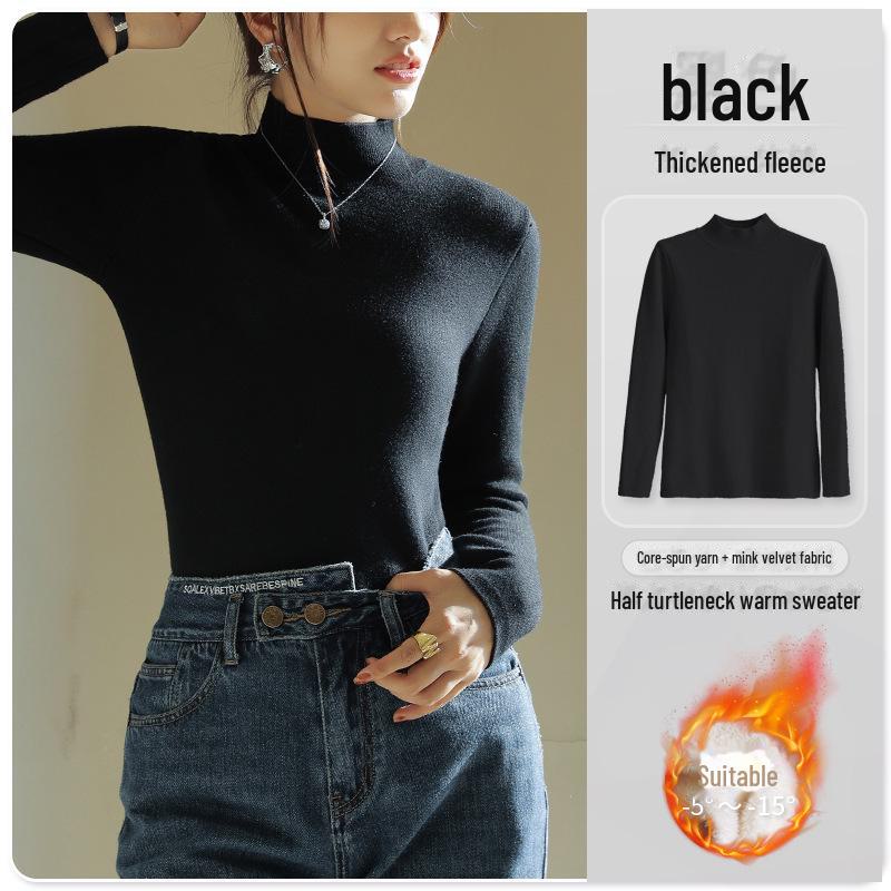 Уютный женский плюшевый свитер с полувысоким воротником - стильный толстый трикотажный топ с длинными рукавами для осени и зимы L (Recommended for 55-60 kg)